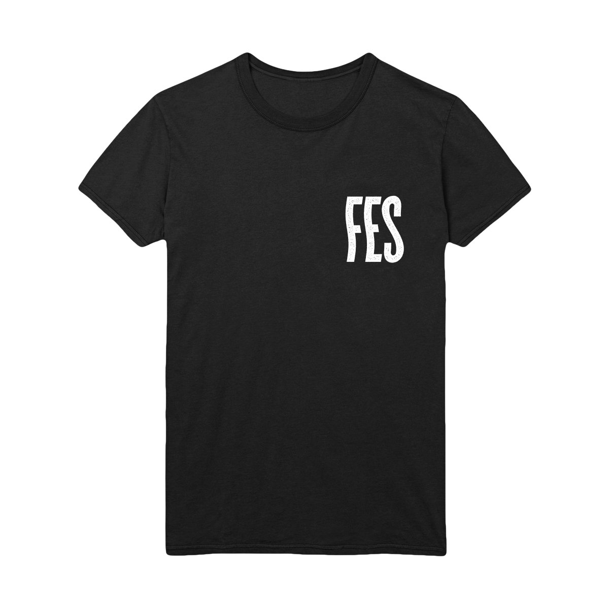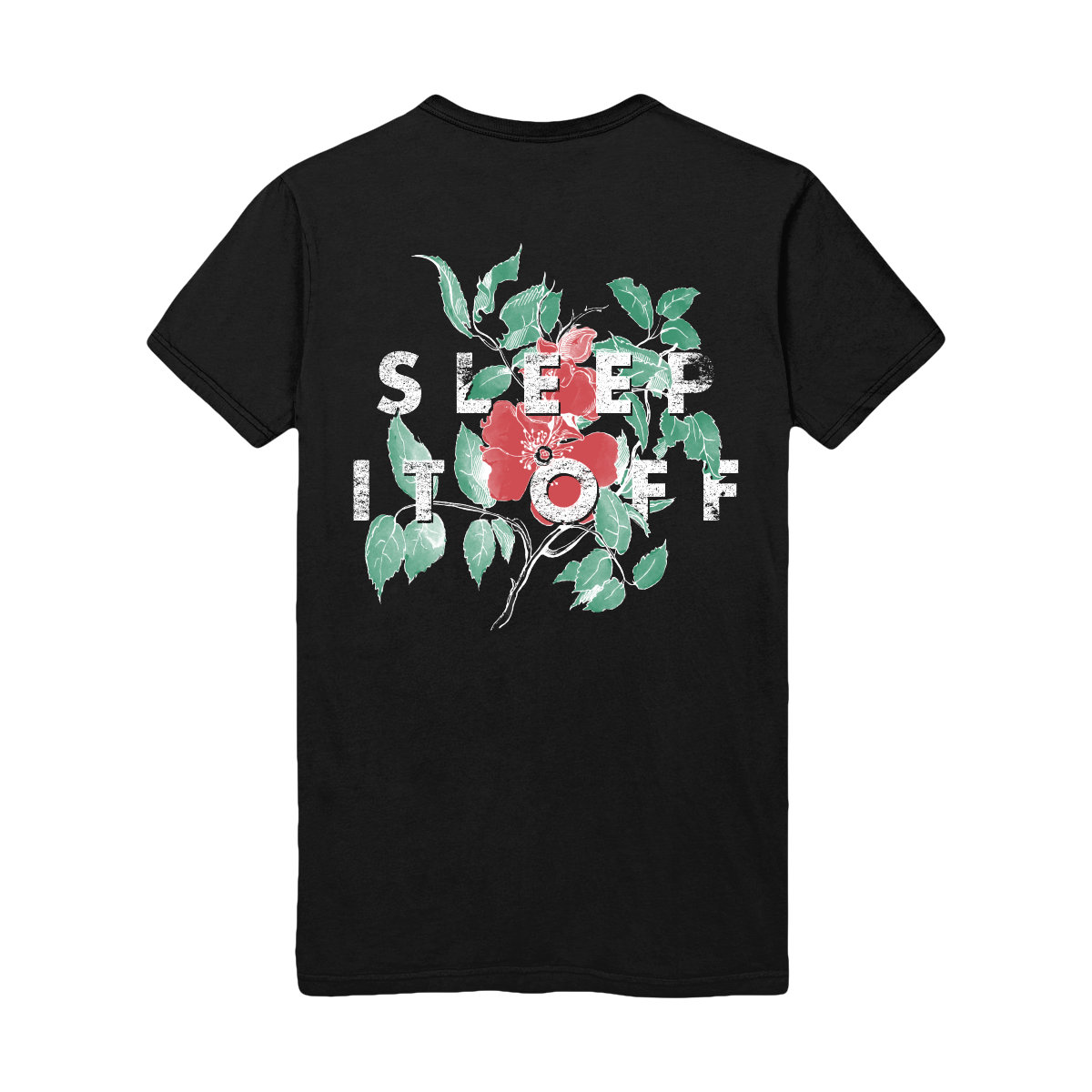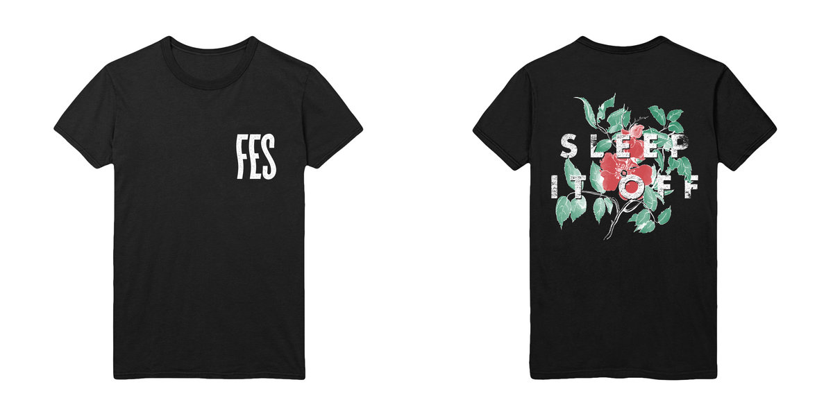 Black t shirt with FES logo on the front left breast and 'Sleep it Off' design on the back.