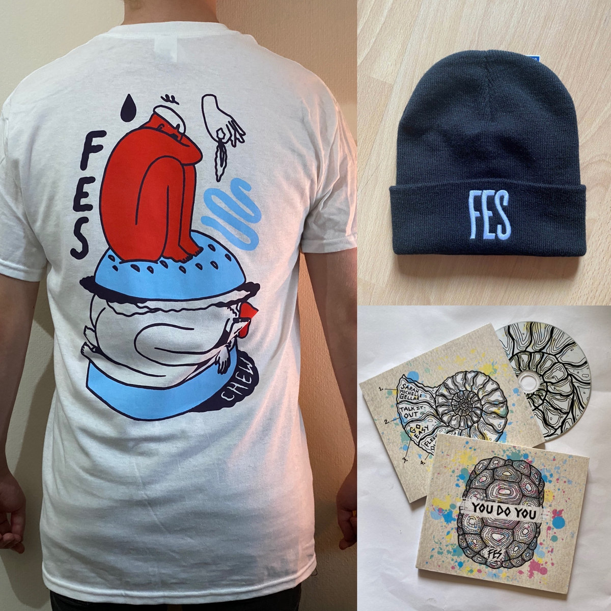 White 'Chew' T-Shirt, FES Beanie + 'You do You' Physical CD